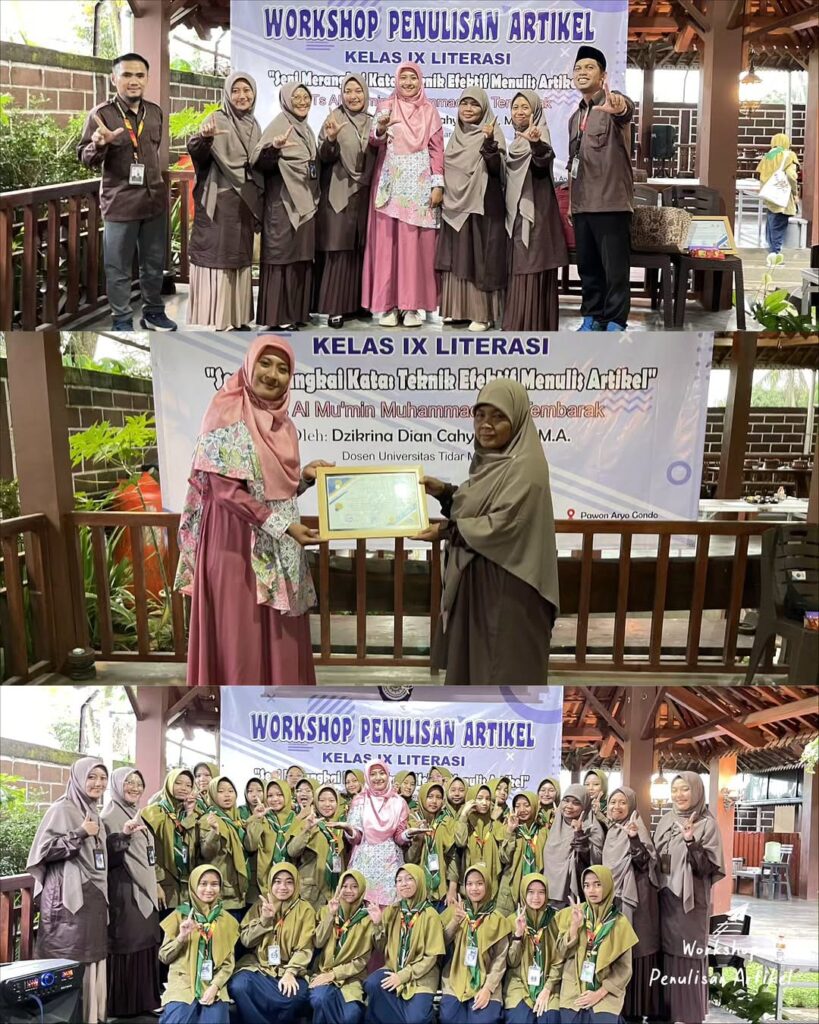 TEMANGGUNG, Rabu – Kamis, 5/6 November 2025 – MTs ALMATERA kembali menunjukkan komitmennya dalam membangun budaya literasi di kalangan santri. Pada kegiatan kali ini, ALMATERA menyelenggarakan Workshop Penulisan Artikel dengan menghadirkan narasumber Dzikrina Dian Cahyani, S.S., M.A., seorang akademisi sekaligus dosen di Universitas Tidar, Magelang.